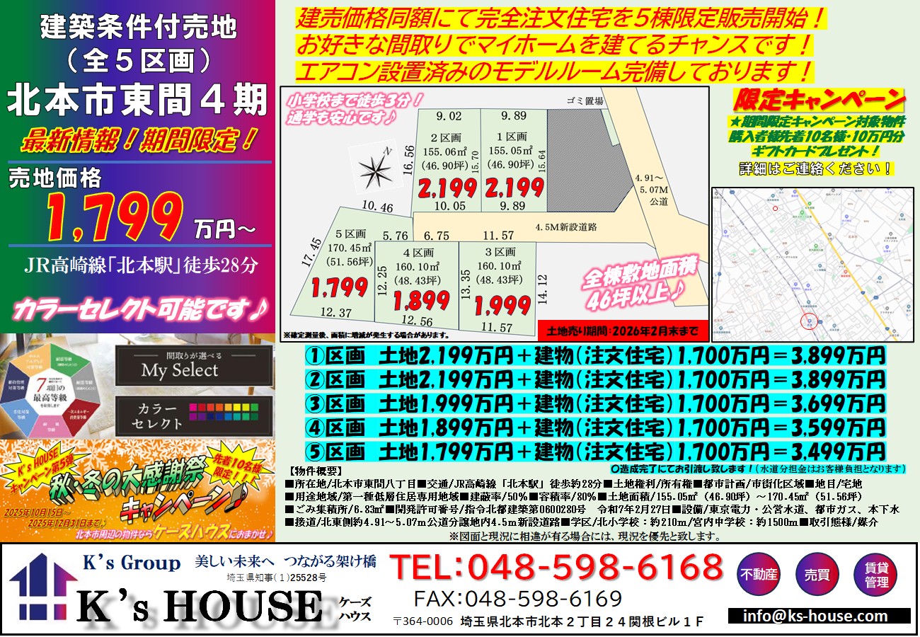 【建築条件付売地】北本市東間4期(全5区画)タクト