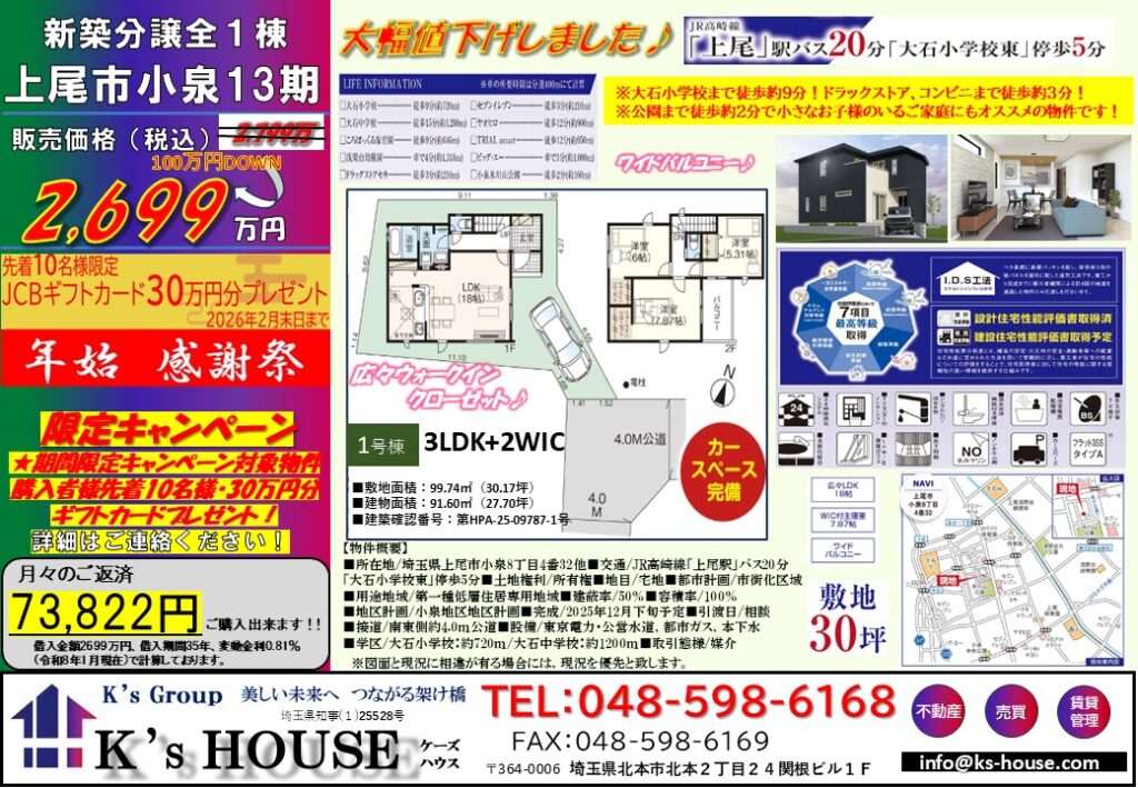 【新築分讓】上尾市小泉13期(全1棟)