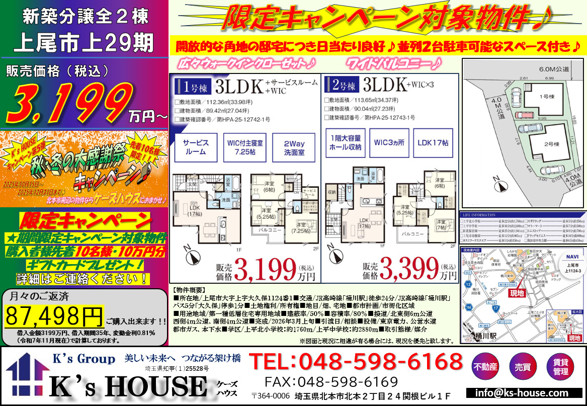 | 交通アクセス | JR高崎線「桶川駅」徒歩24分/JR高崎線「桶川駅」バス5分「大久保」徒歩1分 |