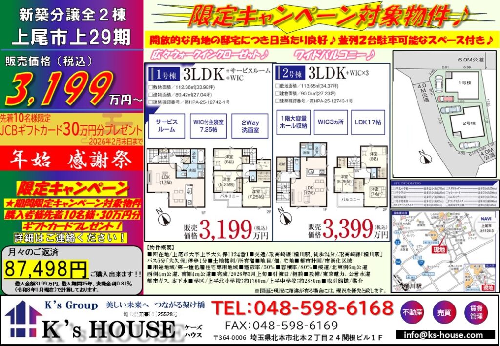 【新築分譲】上尾市上29期(全2棟)