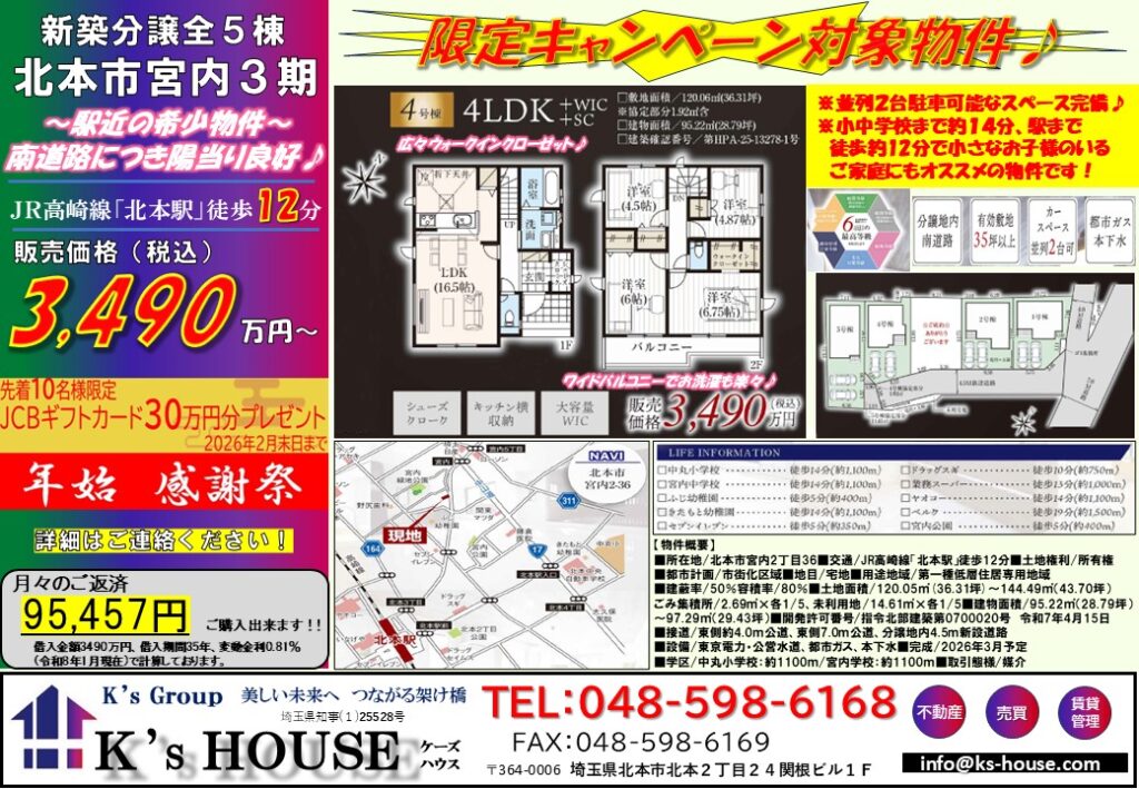 【新築住宅】北本市宮内3期(全5棟・今回販売4棟)