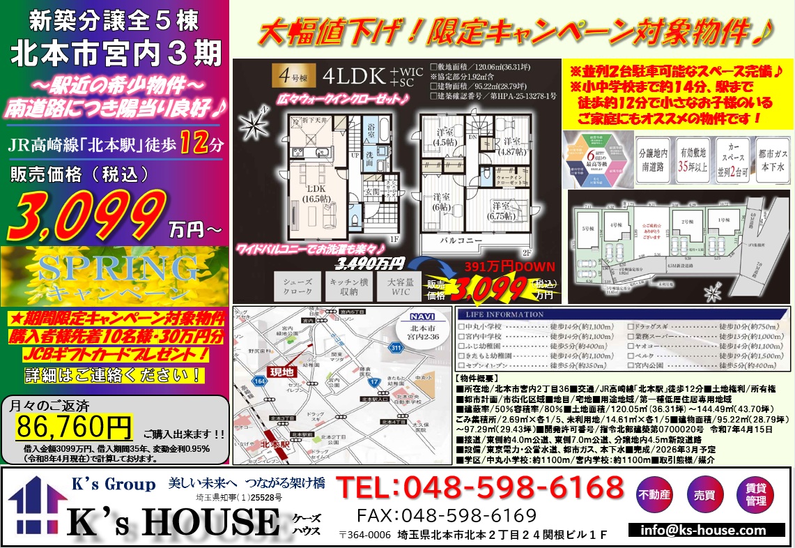 全棟大幅値下げ!残り4棟!【新築住宅】北本市宮内3期(全5棟)