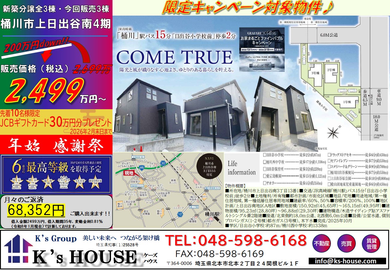 ☆限定キャンペーン対象物件☆【新築住宅】桶川市上日出谷南4期 全3棟・今回販売3棟!