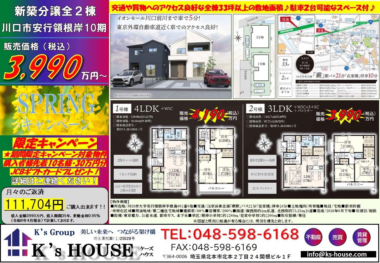 【新築住宅】川口市安行領根岸10期(全2棟)